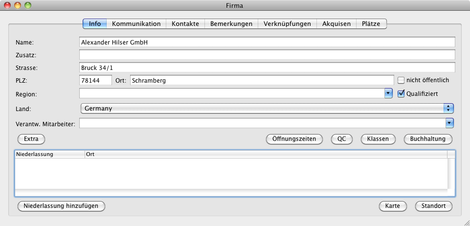 Über Ctrl-Klick auf die Firma kann obiges Fenster jederzeit wieder geöffnet, damit die Verbindung zum odt-Dokument angezeigt und dieses über einen Doppelklick geöffnet werden.