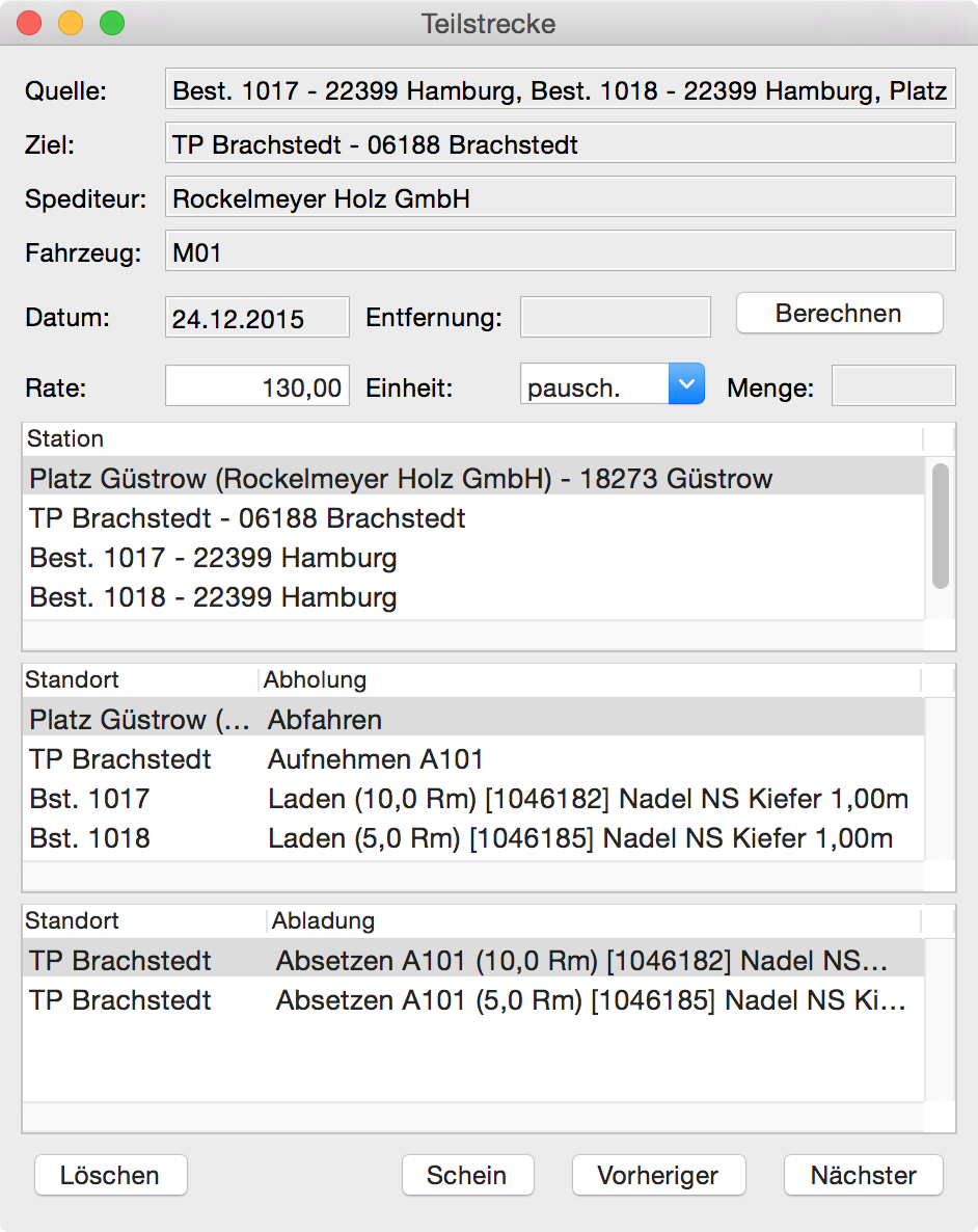Jede Teilstrecke kann individuell mit einer Frachrate und Einheit versehen und einzeln abgerechnet werden.