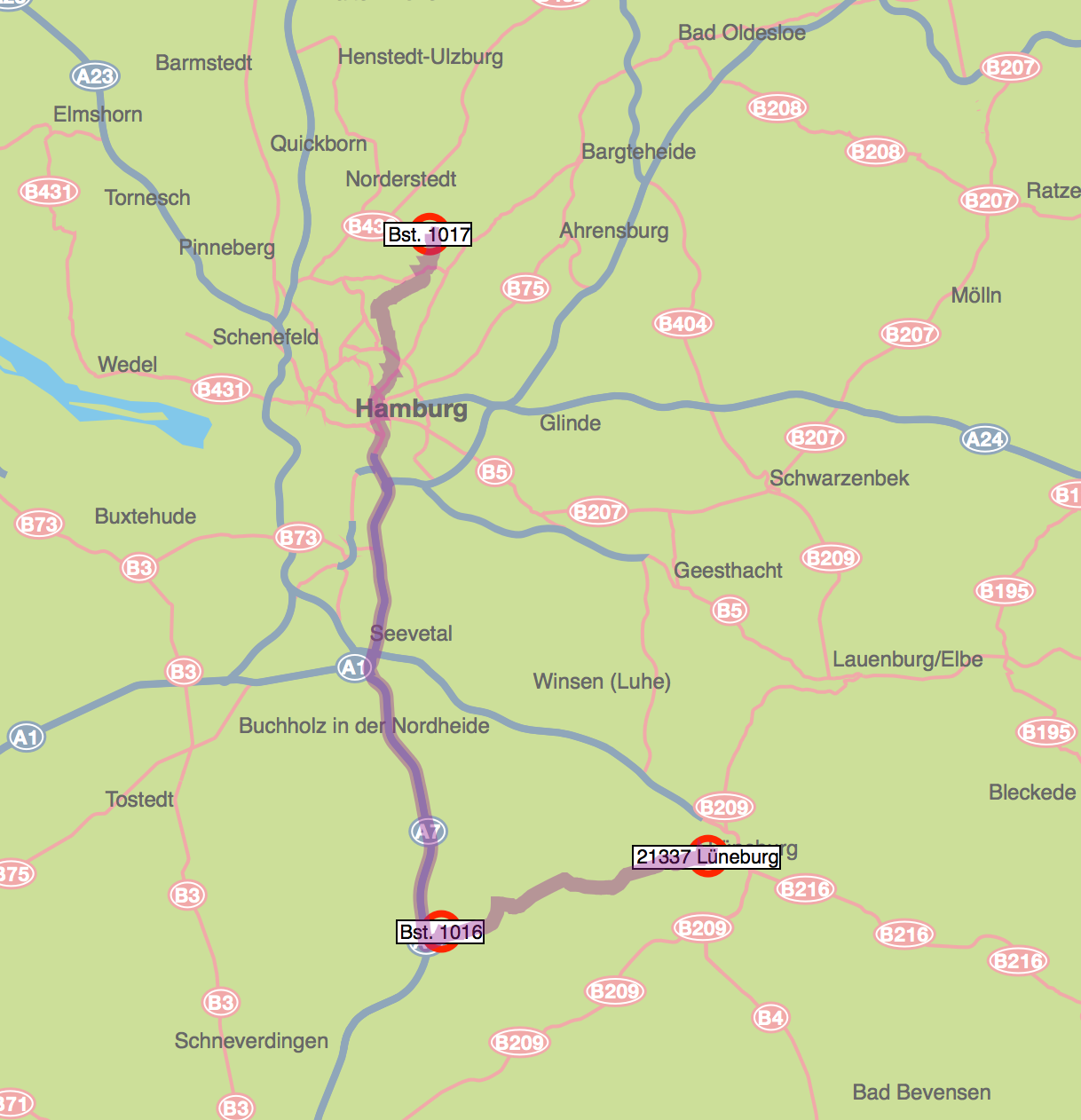 Die Darstellung der Teilstrecken auf einer OpenStreetMap-Karte hilft dem Disponenten, den Überblick zu behalten.